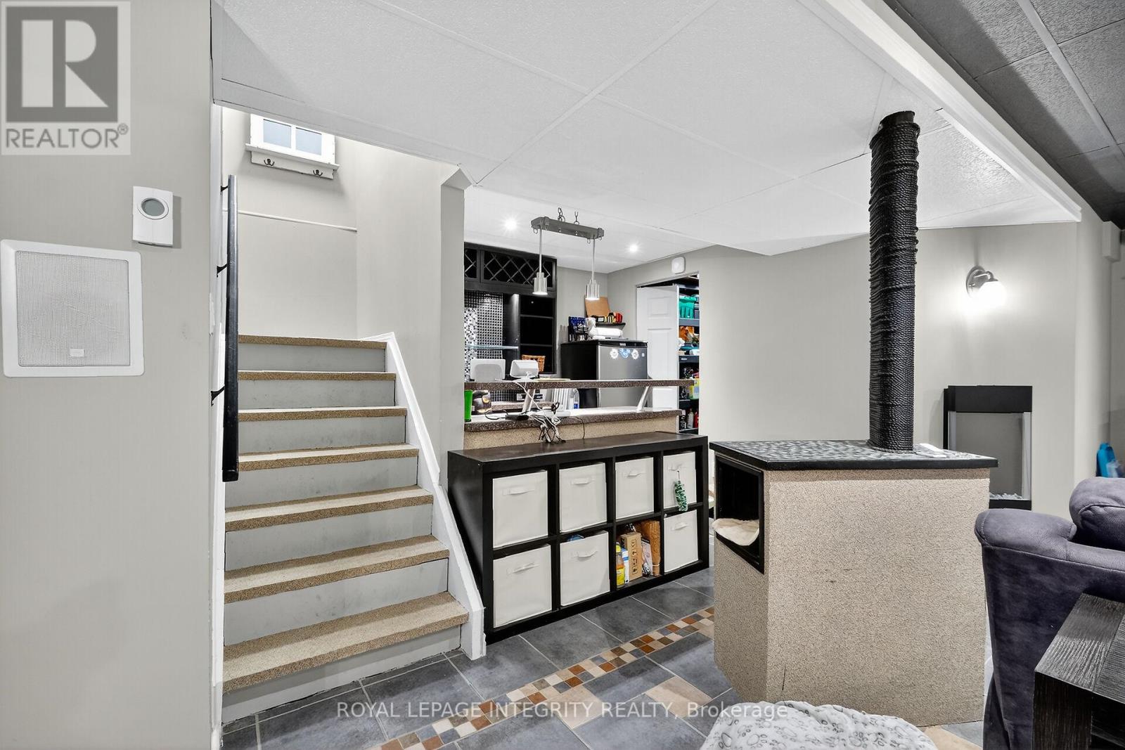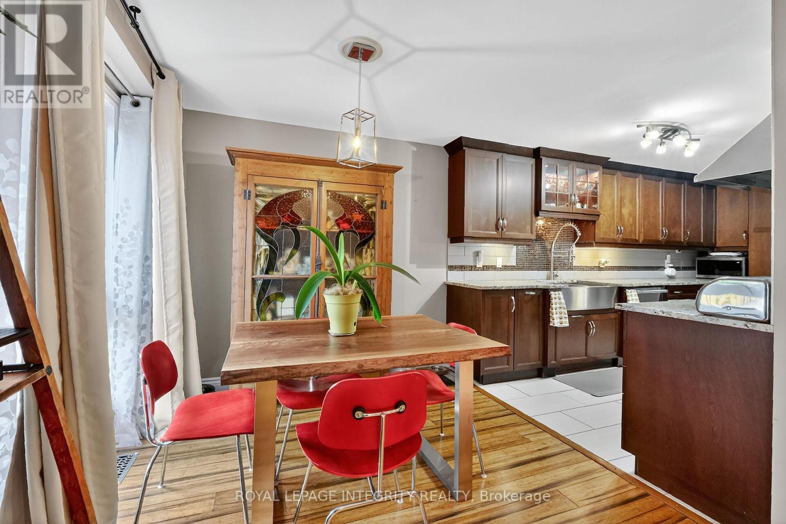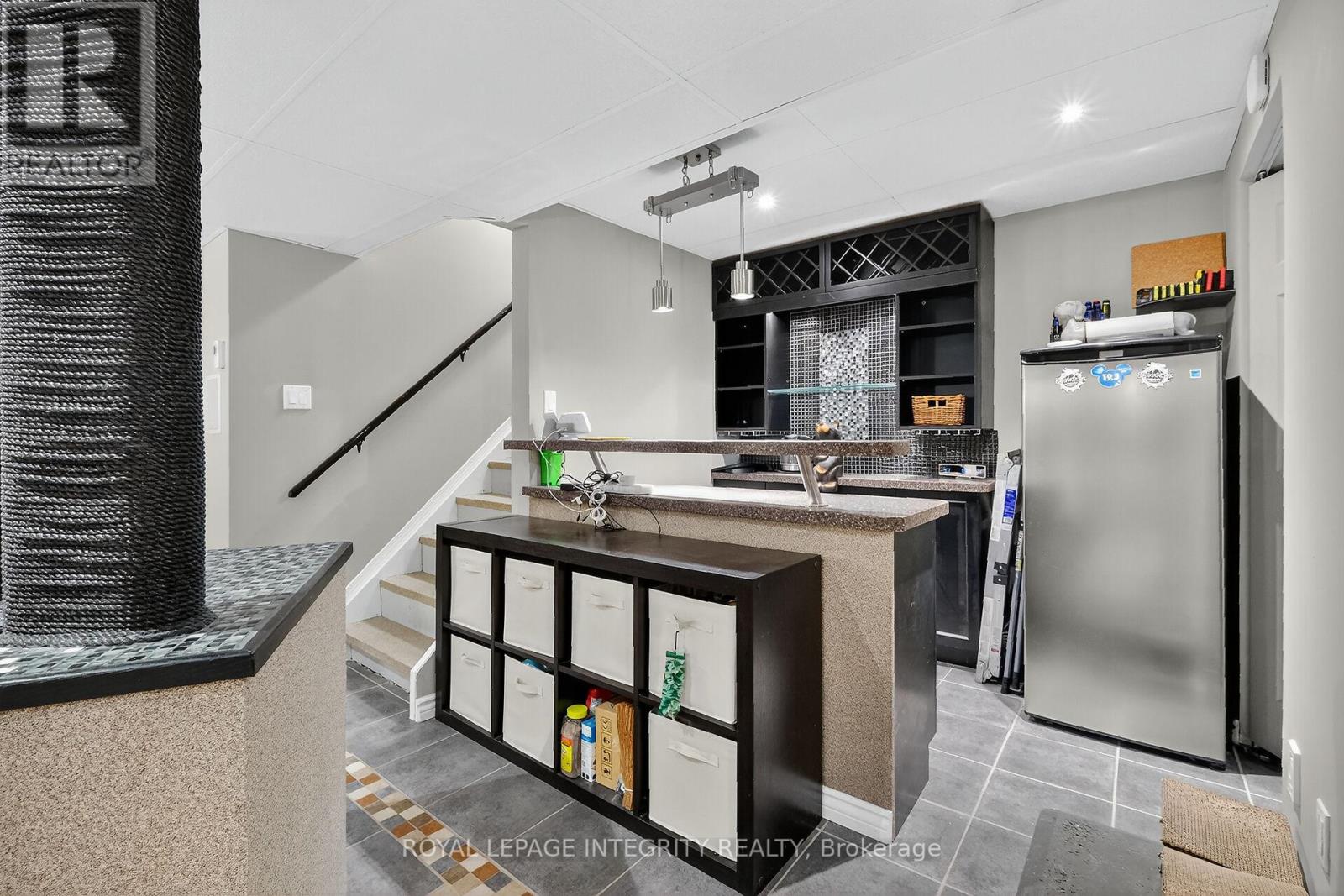Welcome to this beautifully renovated and meticulously maintained townhome in a wonderful, hidden-away part of Fisher Glen. Combining luxurious finishes with significant energy-efficiency upgrades, this home is a true turnkey masterpiece. Step through the tiled entrance, which offers access to the garage and an updated powder room. The main level flows beautifully with stunning bamboo flooring throughout the living and dining areas. The living room is perfect for relaxing or entertaining, featuring a cozy gas fireplace, elegant pot lights, built-in speakers, and sliding doors that open to your private, treed backyard oasis. This outdoor space is enhanced with a stylish pergola, perfect for summer evenings, and a practical storage shed. At the heart of the home is a custom-designed dream kitchen. A chef's delight, including tiled floors and backsplash, granite countertops, and dark birch custom cabinets with sensor-activated pot lights. Culinary adventures await with a deep stainless-steel double sink and a professional-grade gas stove with six burners, two ovens, and a large hood fan. Upstairs, a skylight in the hallway bathes the second level in natural light. This floor hosts three generous bedrooms, including a master suite with a private 3-piece ensuite, porcelain tile floors, and a granite countertop. An updated four-piece main bathroom, also with granite counters and tiled flooring, serves the additional bedrooms. The professionally finished basement is an entertainer's paradise. Enjoy ultimate comfort with heated floors, complemented by adhesive wall insulation for maximum warmth. This incredible space features a unique bar area, a projection movie screen, pot lights, and built-in surround sound for the ultimate home theatre experience. Don't miss your chance to own this exceptional property where every detail has been thoughtfully considered. See it before it disappears! All showings require overnight notice, please, and 24 hours irr. for all offers. (id:4069)
