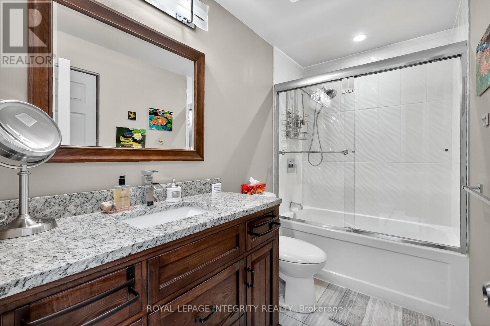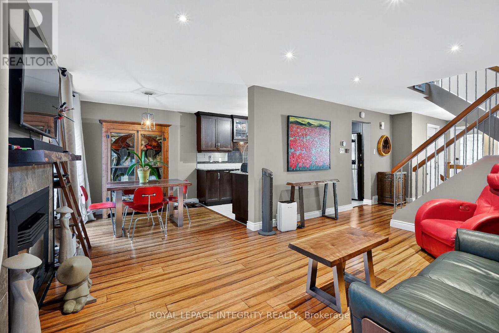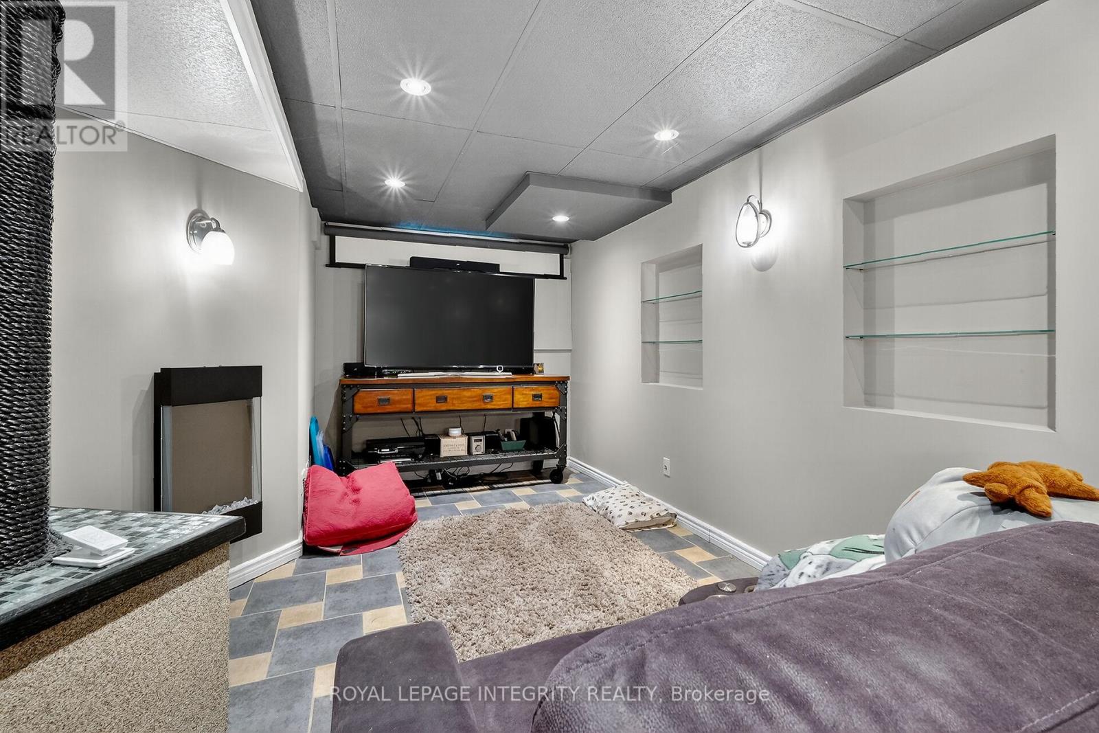 Welcome to this beautifully renovated and meticulously maintained townhome in a wonderful, hidden-away part of Fisher Glen. Combining luxurious finishes with significant energy-efficiency upgrades, this home is a true turnkey masterpiece. Step through the tiled entrance, which offers access to the garage and an updated powder room. The main level flows beautifully with stunning bamboo flooring throughout the living and dining areas. The living room is perfect for relaxing or entertaining, featuring a cozy gas fireplace, elegant pot lights, built-in speakers, and sliding doors that open to your private, treed backyard oasis. This outdoor space is enhanced with a stylish pergola, perfect for summer evenings, and a practical storage shed. At the heart of the home is a custom-designed dream kitchen. A chef's delight, including tiled floors and backsplash, granite countertops, and dark birch custom cabinets with sensor-activated pot lights. Culinary adventures await with a deep stainless-steel double sink and a professional-grade gas stove with six burners, two ovens, and a large hood fan. Upstairs, a skylight in the hallway bathes the second level in natural light. This floor hosts three generous bedrooms, including a master suite with a private 3-piece ensuite, porcelain tile floors, and a granite countertop. An updated four-piece main bathroom, also with granite counters and tiled flooring, serves the additional bedrooms. The professionally finished basement is an entertainer's paradise. Enjoy ultimate comfort with heated floors, complemented by adhesive wall insulation for maximum warmth. This incredible space features a unique bar area, a projection movie screen, pot lights, and built-in surround sound for the ultimate home theatre experience. Don't miss your chance to own this exceptional property where every detail has been thoughtfully considered. See it before it disappears! All showings require overnight notice, please, and 24 hours irr. for all offers. (id:4069)